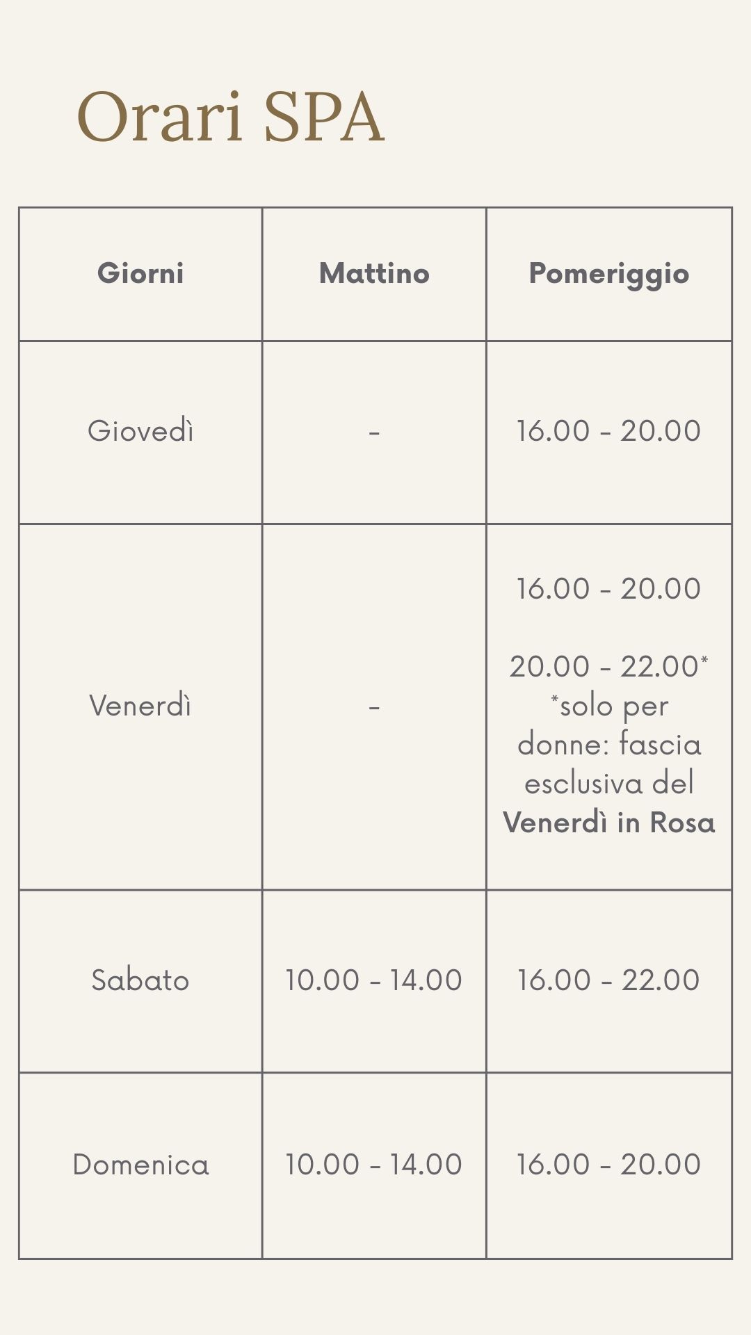 L’accesso alla SPA è riservato ai maggiori di 14 anni.